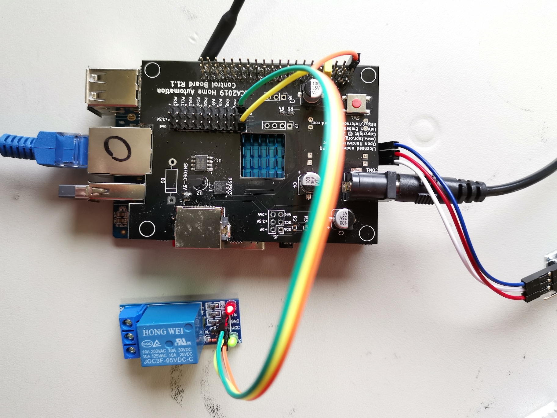 I was also a bit confused when the relay didn’t work initially, but that turns out because I’d misunderstood the wiring. The relay needs to be powered from the 3.3v pin on the 40 pin header, as there is a PCB error which puts 5v on the pins labelled as 3.3v on the GPIO header. I ended up with jumper wires which looked like this:
