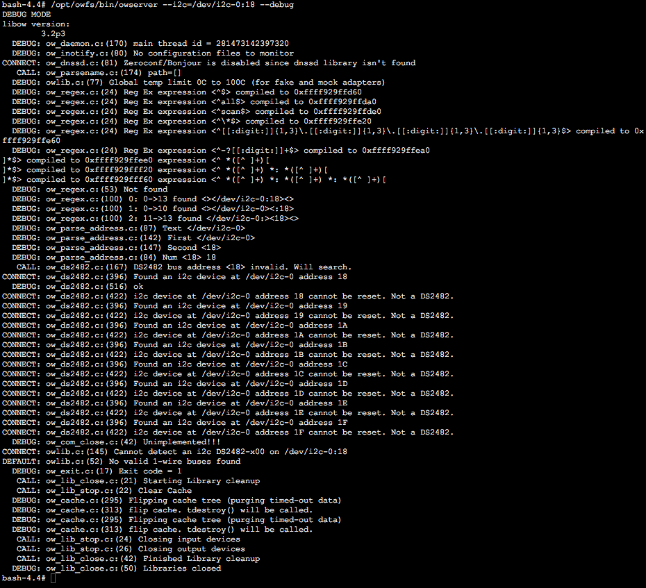 Debugging that involved connecting to the owfs2mqtt docker container (hint: ssh to the Orange Pi, do a docker ps, and then run bash inside the docker container for the addon). Running owserver with debug produces this: