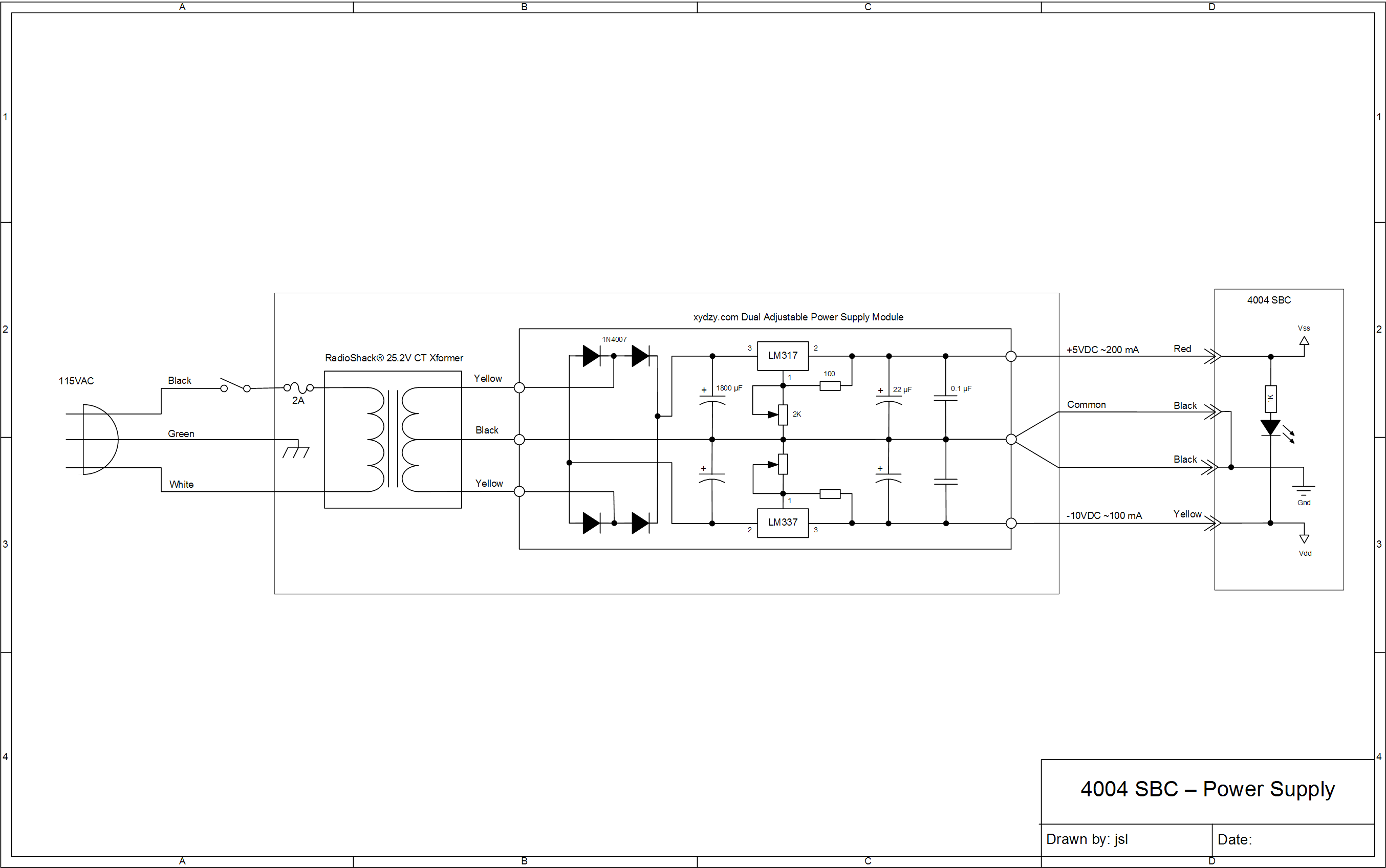 The Intel 4004 microprocessor has slightly weird power supply requirements by modern standards. You see, it needs to be supplied with +5V DC, and -10V DC at the same time to work.