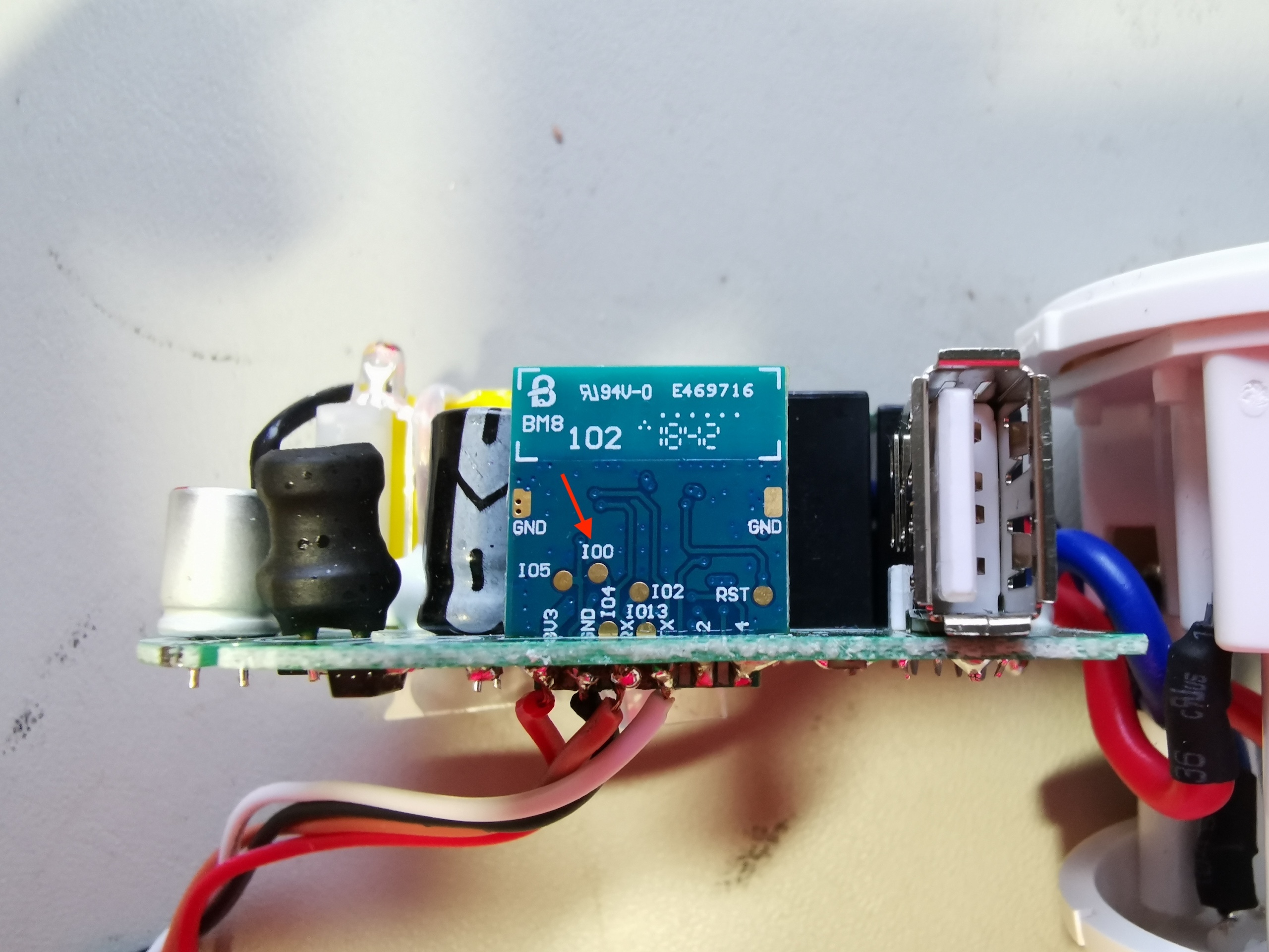 At this point I was in the process of working out how to use esptool to re-flash the plug when I got super lucky. However, first… Where the hell is GPIO0 (the way you turn on flashing mode)? Its not broken out on the pins for the MCU, but as a kind redditor pointed out, it is exposed on a pad on the back of the board: