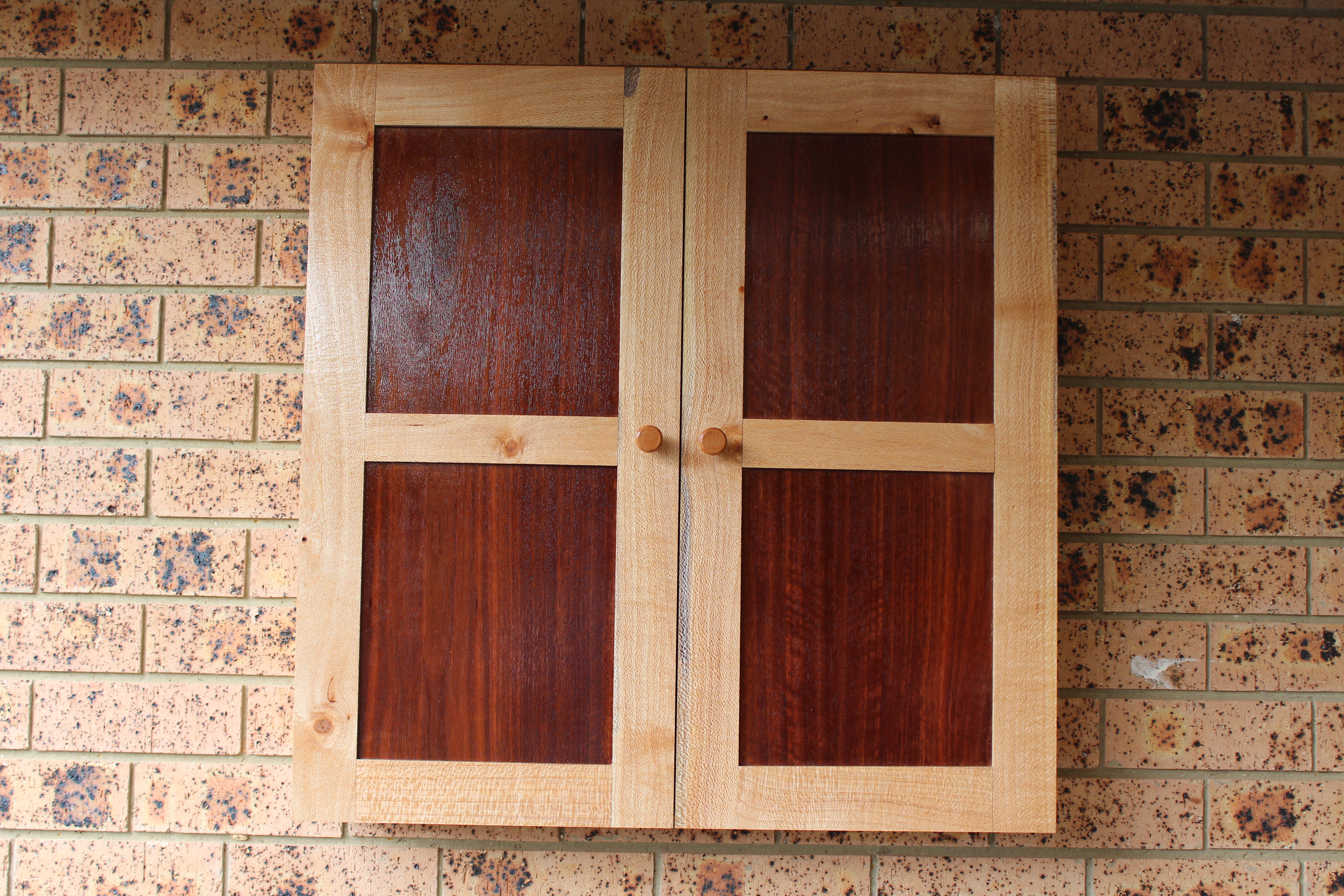 Which I think is a pretty good outcome to be honest. The cabinet is solid Silky Oak, with a Jarrah veneer for the door panels. The handles are hand turned from Silky Oak to match the cabinet.