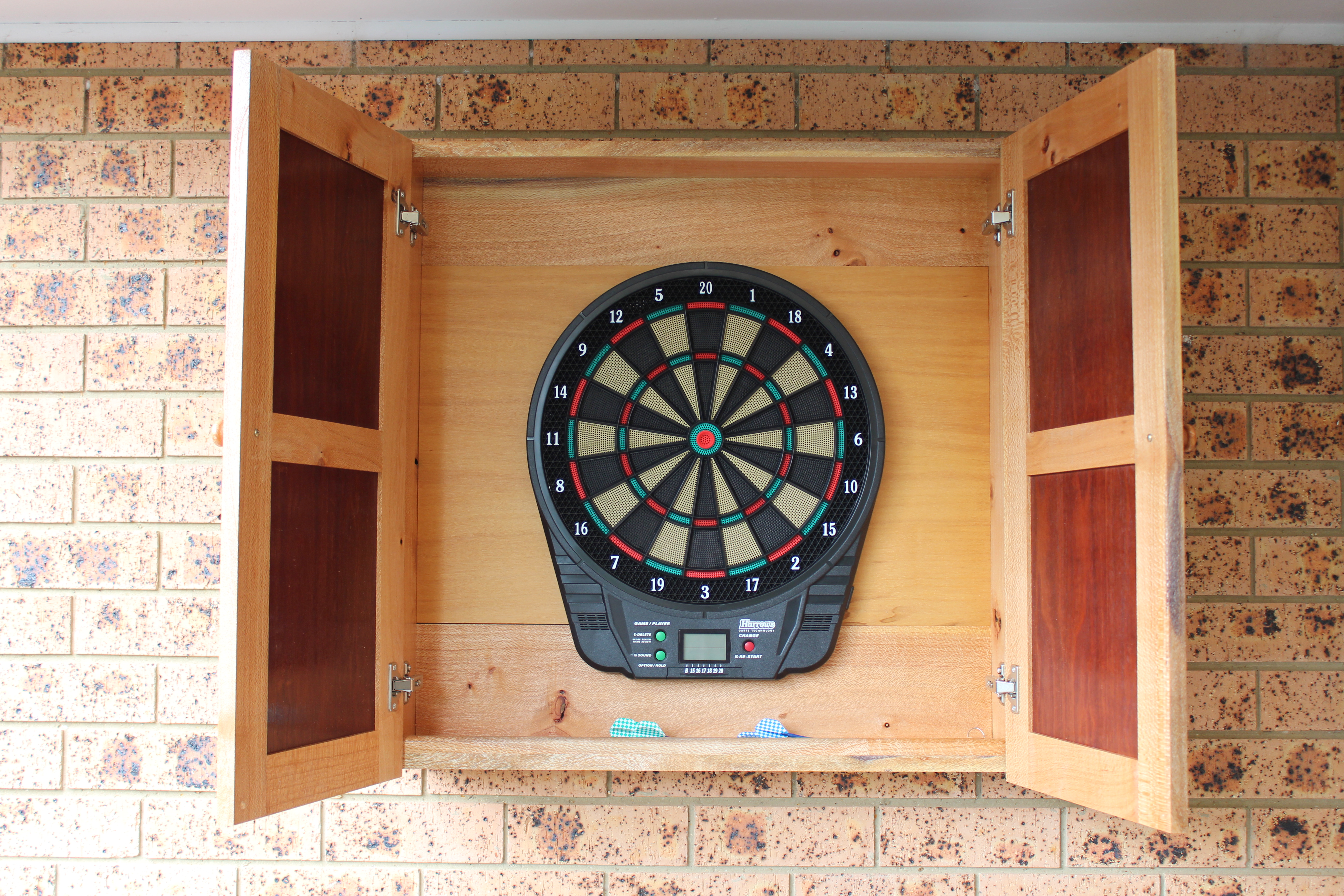 My most recent project is a cabinet for a darts board. This is based on a project in Australian Woodsmith. I tweaked the design along the way though because I wanted something more modern and some of the rigidity elements didn’t seem to be required for strength. Here’s how it turned out: